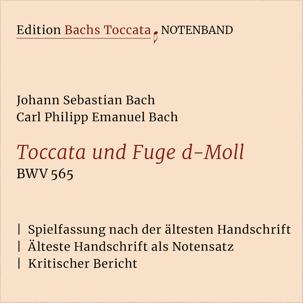 Die Edition Bachs Toccata teilt sich auf in einen Notenband und einen Textband. Der Notenband enthält die Spielfassung sowie die Fassung der ältesten erhaltenen Handschrift in moderner Notation der originalen Schreibweise samt kritischem Bericht. Die Spielfassung ergänzt nach rund 270 Jahren erstmals korrekt den unvollständig erhaltenen Takt 72, wie sie auch sonst der ältesten Handschrift folgt, da alle weiteren erhaltenen Handschriften rund fünfzig Jahre später entstanden und deren Abweichungen dem Gutdünken der jeweiligen Schreiber zuzurechnen sind.
